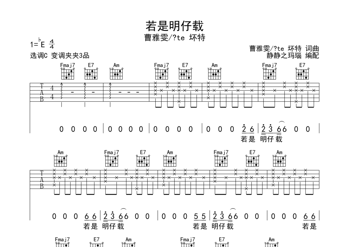曹雅雯/?te 坏特《若是明仔载》吉他谱 - C调弹唱六线谱
