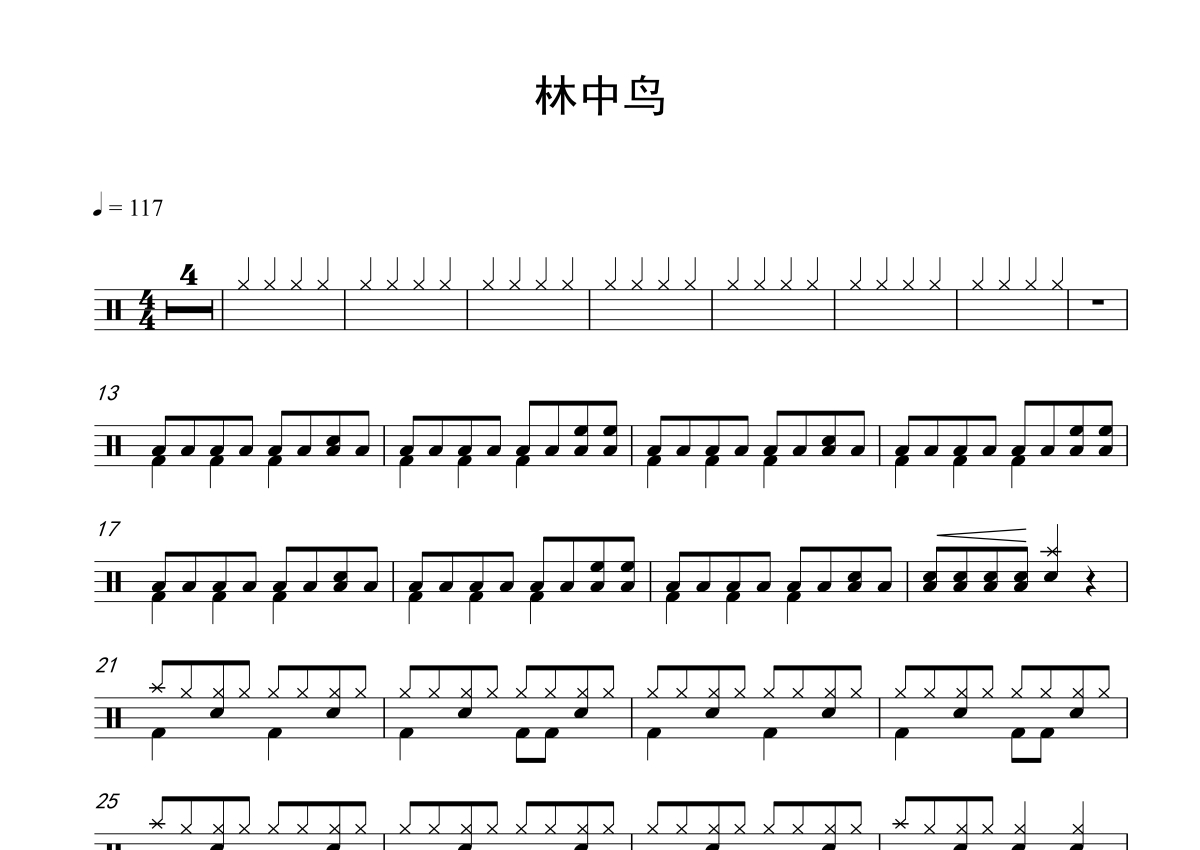 葛林《林中鸟》鼓谱 - 架子鼓谱