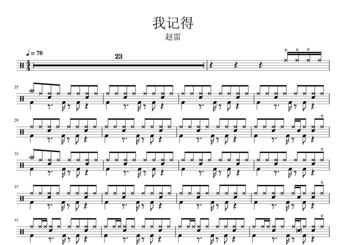赵雷《我记得》鼓谱 - 架子鼓谱
