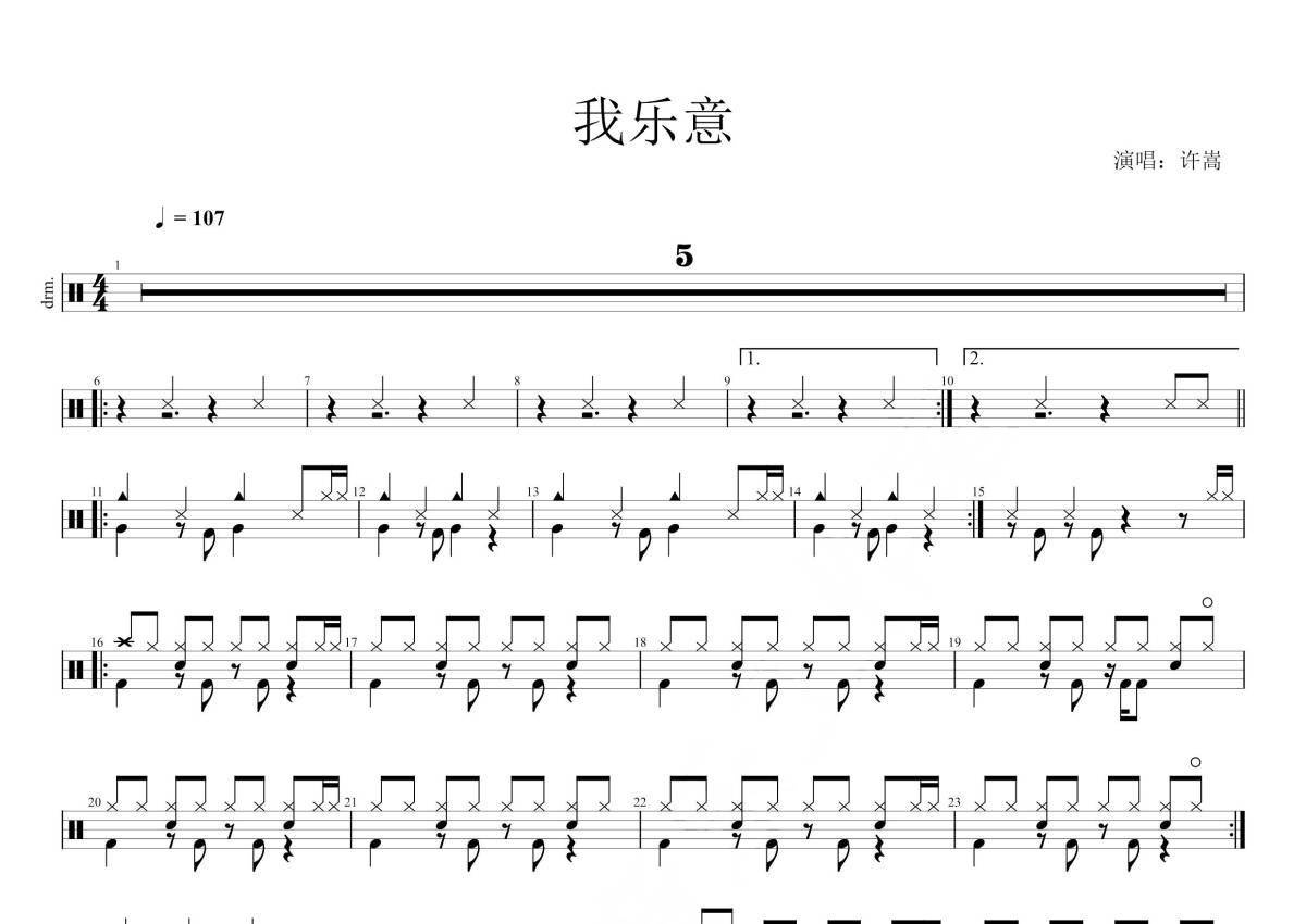 许嵩《我乐意》鼓谱 - 架子鼓谱