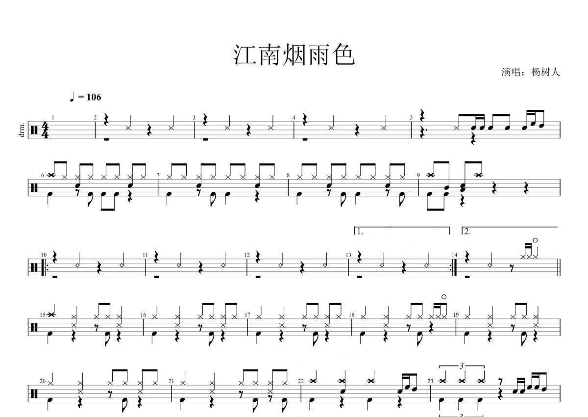 杨树人《江南烟雨色》鼓谱 - 架子鼓谱