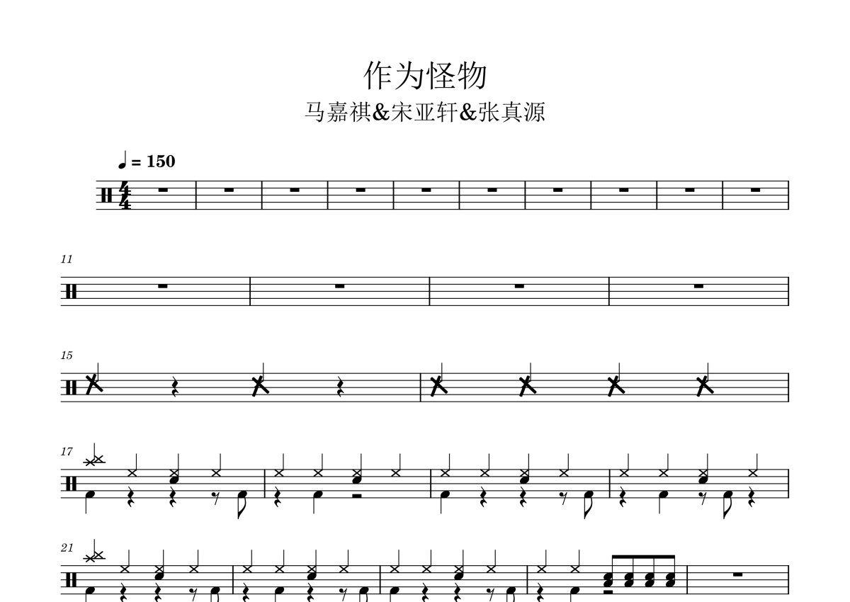 马嘉祺/宋亚轩/张真源《作为怪》鼓谱 - 架子鼓谱