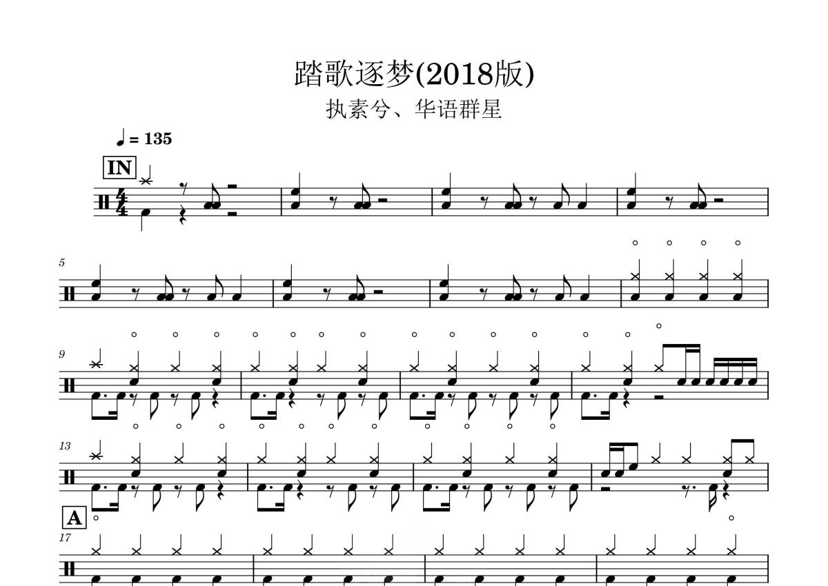 执素兮/华语群星《踏歌逐梦》鼓谱 - 架子鼓谱 - 2018版