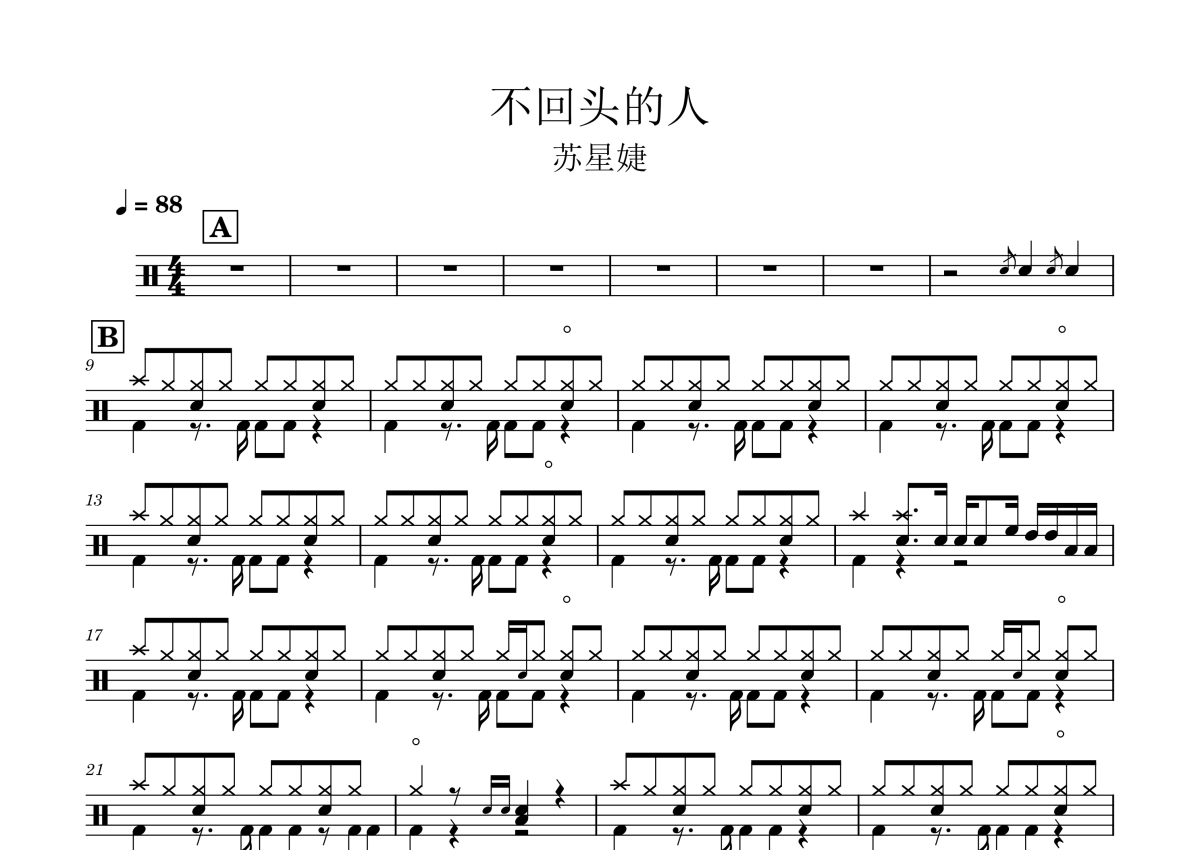 苏星婕《不回头的人》鼓谱 - 架子鼓谱