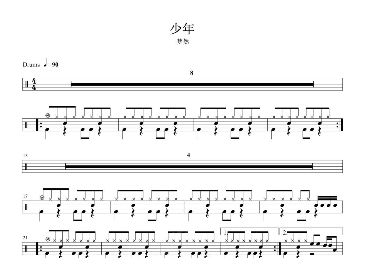 梦然《少年》鼓谱 - 架子鼓谱