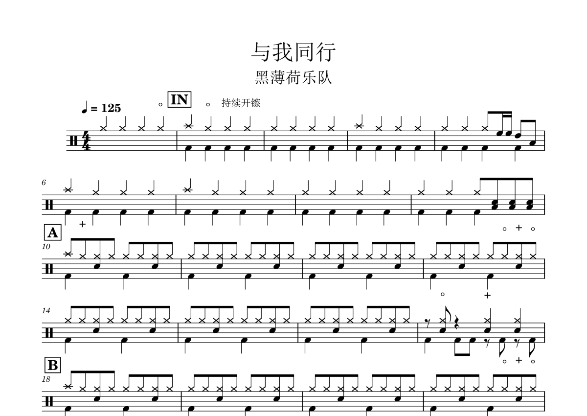 黑薄荷乐队《与我同行》鼓谱 - 架子鼓谱