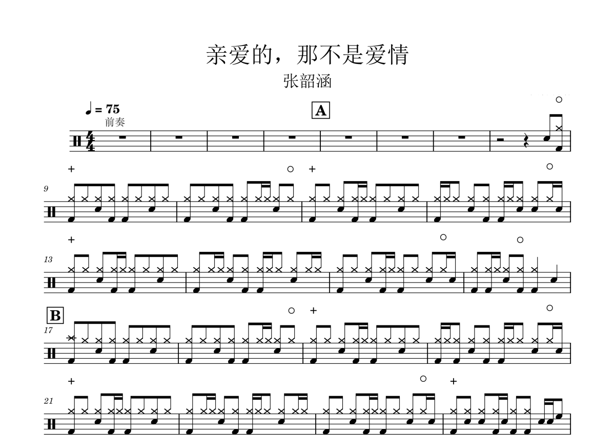 张韶涵《亲爱的,那不是爱情》鼓谱 - 架子鼓谱