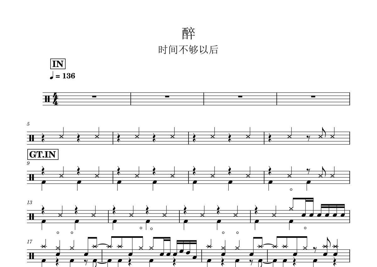 时间不够以后《醉》鼓谱 - 架子鼓谱