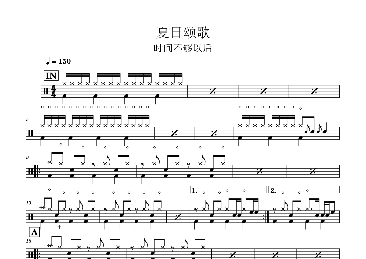 时间不够以后《夏日颂歌》鼓谱 - 架子鼓谱