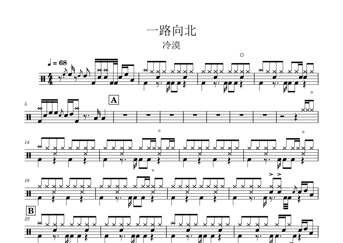 冷漠《一路向北》鼓谱 - 架子鼓谱