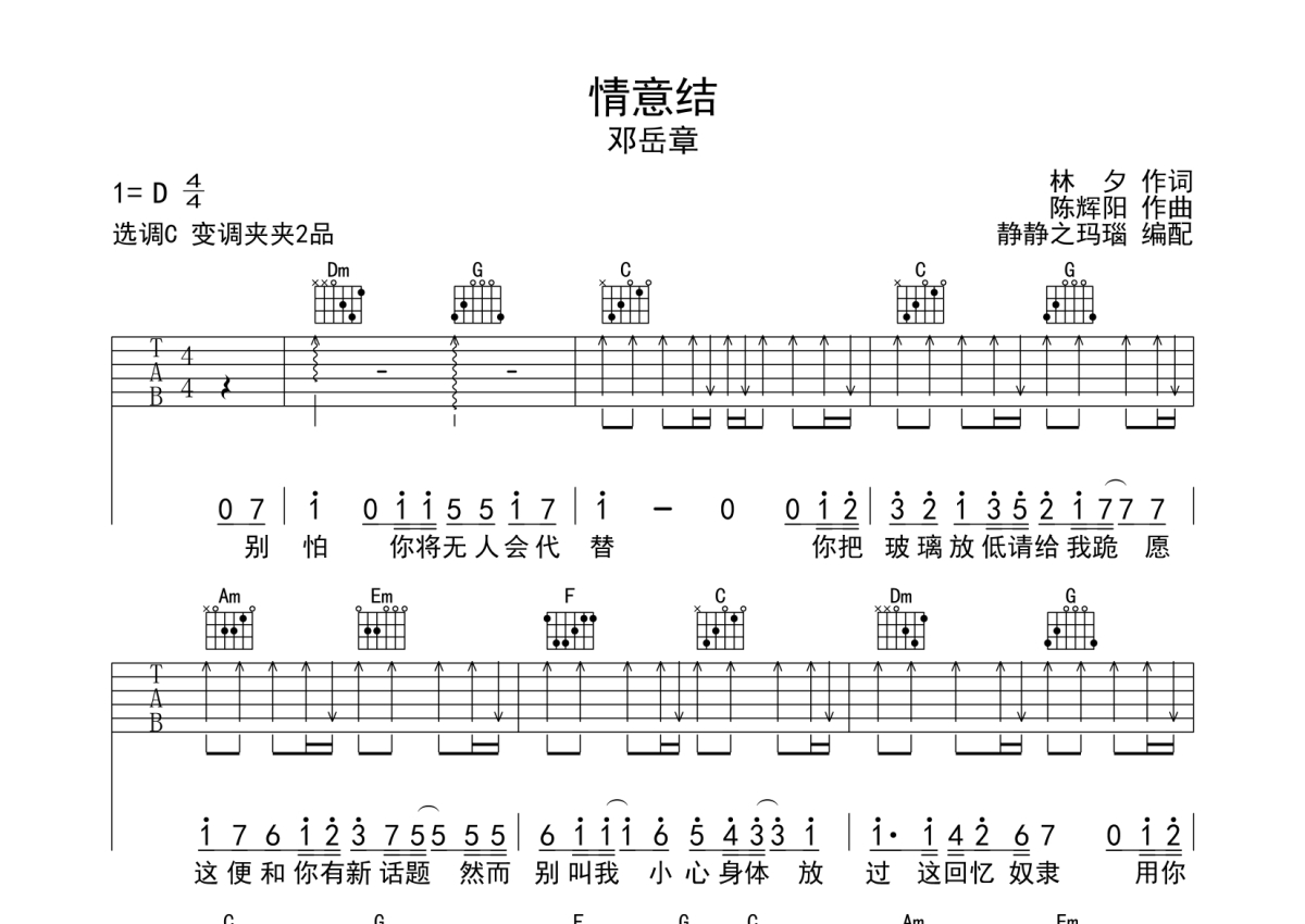 邓岳章《情意结》吉他谱 - C调弹唱六线谱