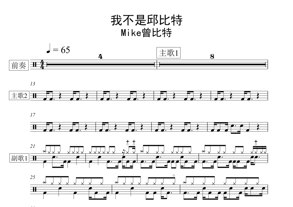 Mike曾比特《我不是邱比特》鼓谱 - 架子鼓谱