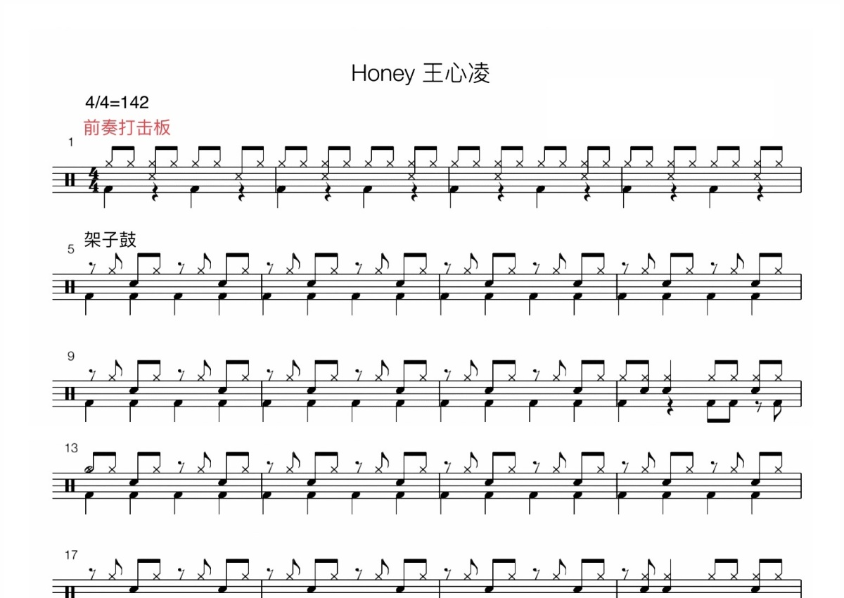 王心凌《Honey》鼓谱 - 架子鼓谱
