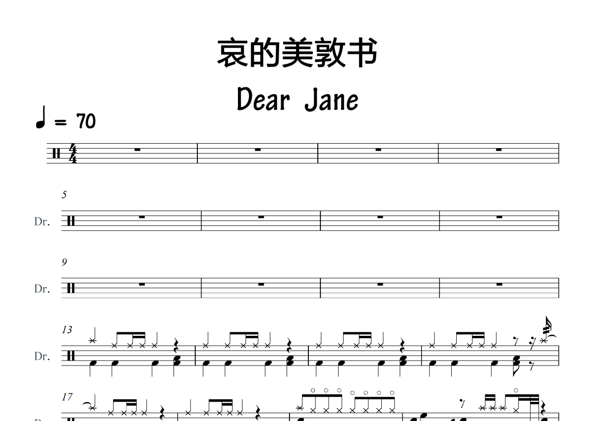 Dear Jane《哀的美敦书》鼓谱 - 架子鼓谱