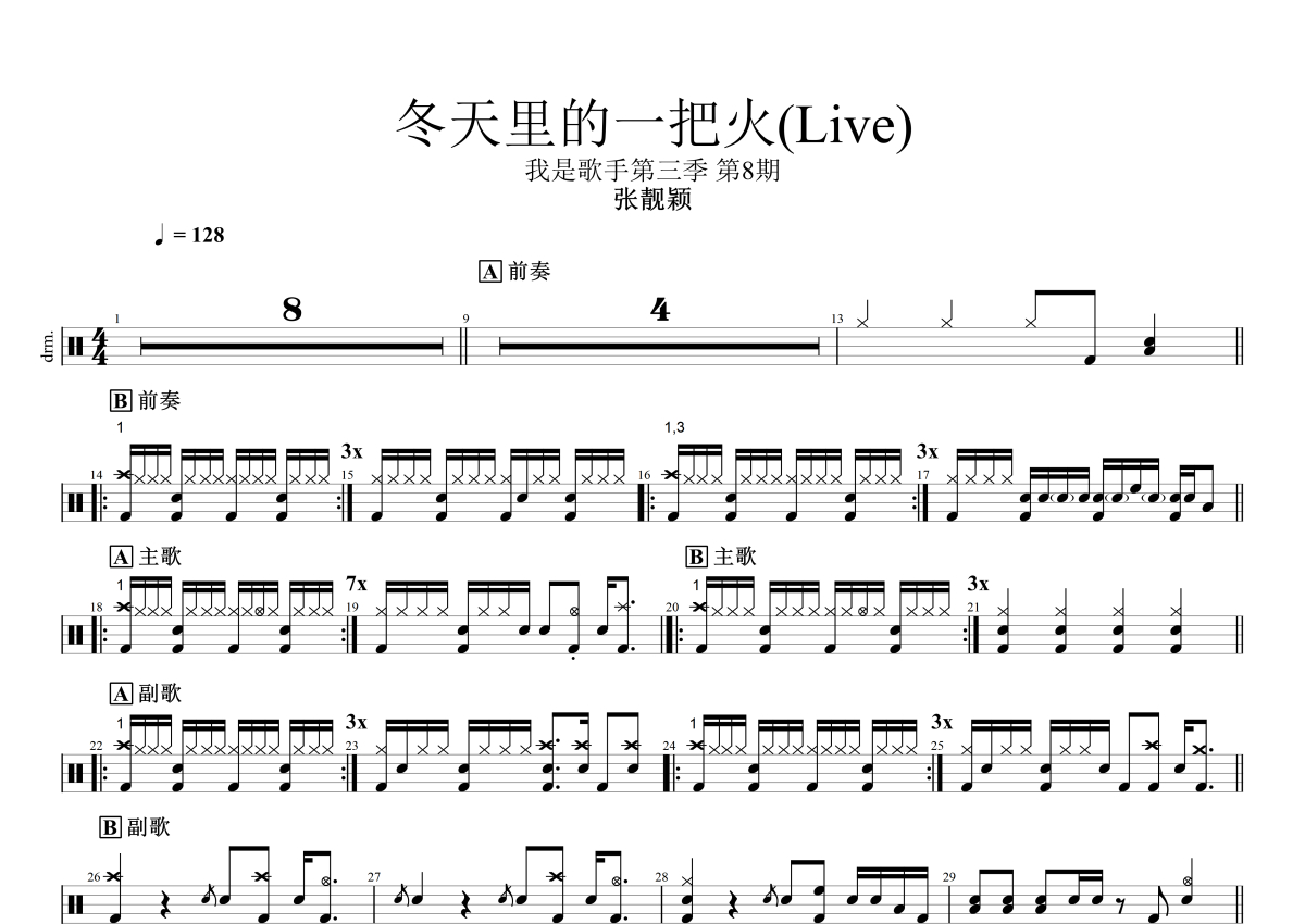 张靓颖《冬天里的一把火》鼓谱 - 架子鼓谱 - 我是歌手Live版