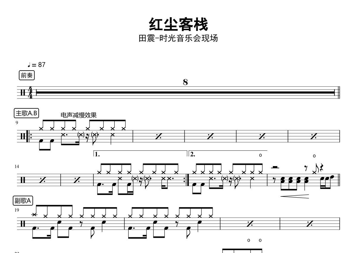 田震《红尘客栈》鼓谱 - 架子鼓谱 - 时光音乐会现场版
