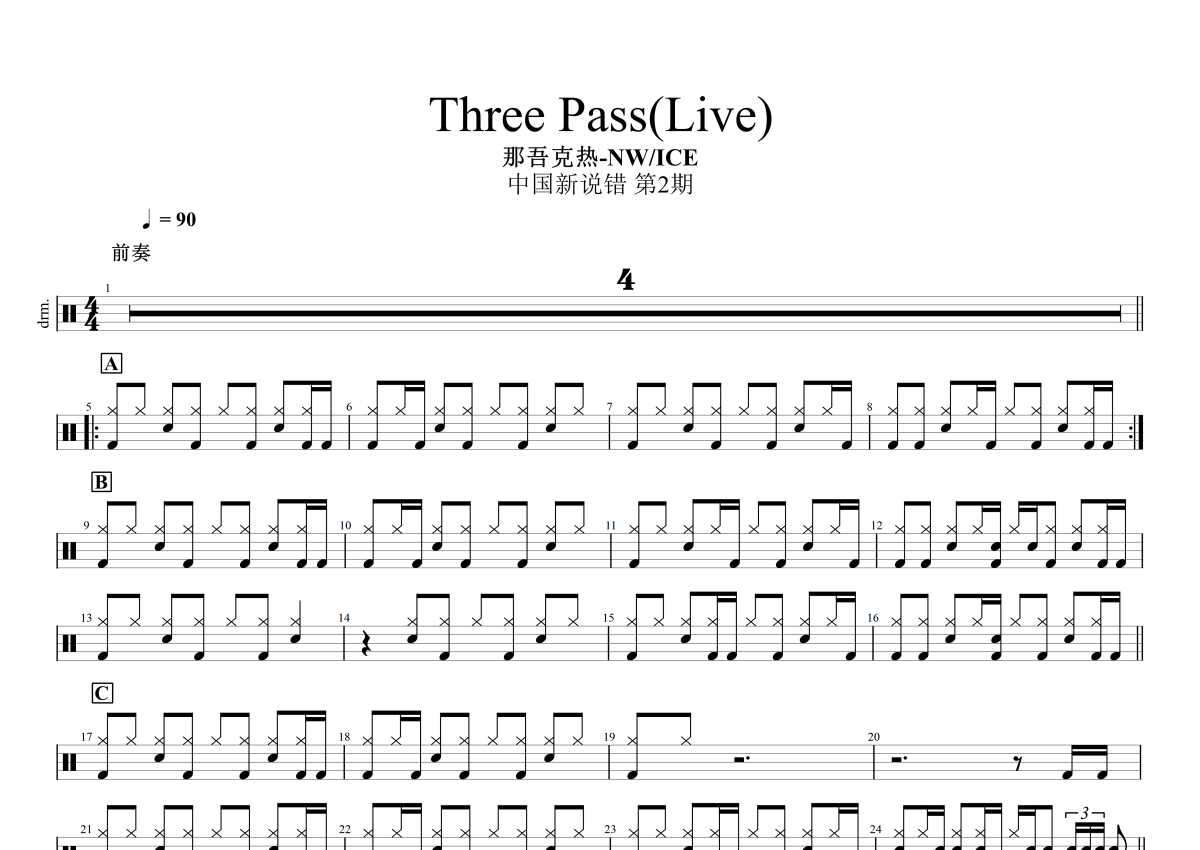 那吾克热-NW/ICE《Three Pass》鼓谱 - 架子鼓谱 - 中国新说唱Live版