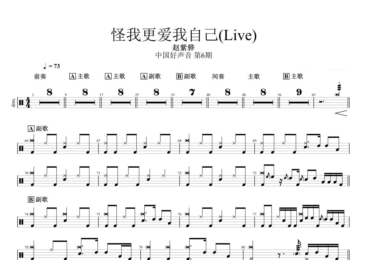 赵紫骅《怪我更爱我自己》鼓谱 - 架子鼓谱 - 中国好声音Live版