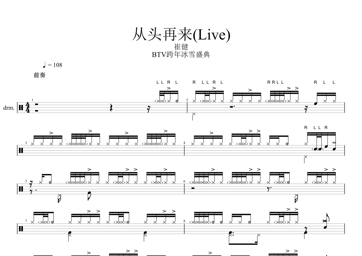 崔健《从头再来》鼓谱 - 架子鼓谱