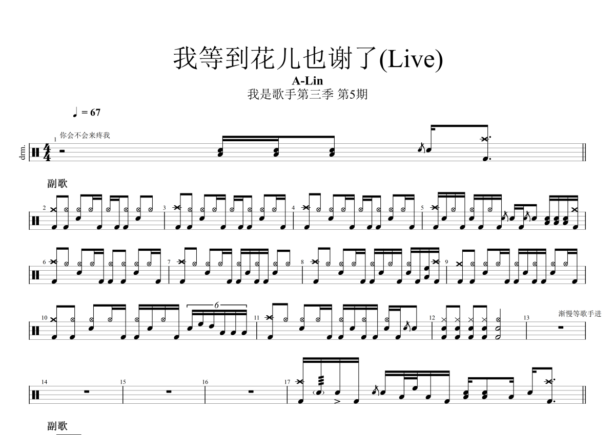 A-Lin《我等到花儿也谢了》鼓谱 - 架子鼓谱 - Live