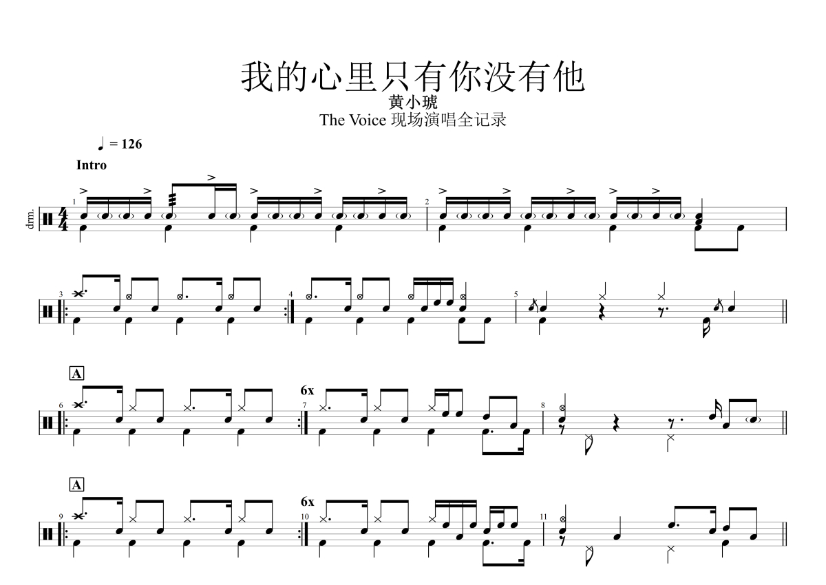 黄小琥《我的心里只有你没有他》鼓谱 - 架子鼓谱 - Live