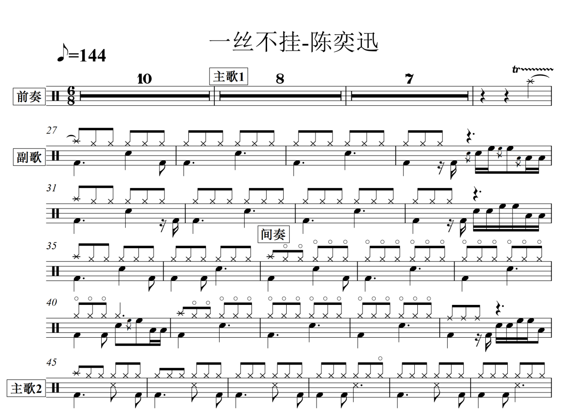 陈奕迅《一丝不挂》鼓谱 - 架子鼓谱