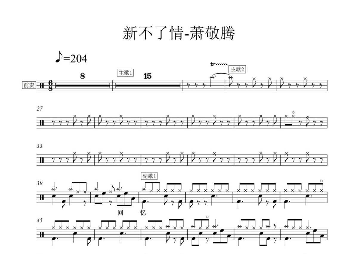 萧敬腾《新不了情》鼓谱 - 架子鼓谱