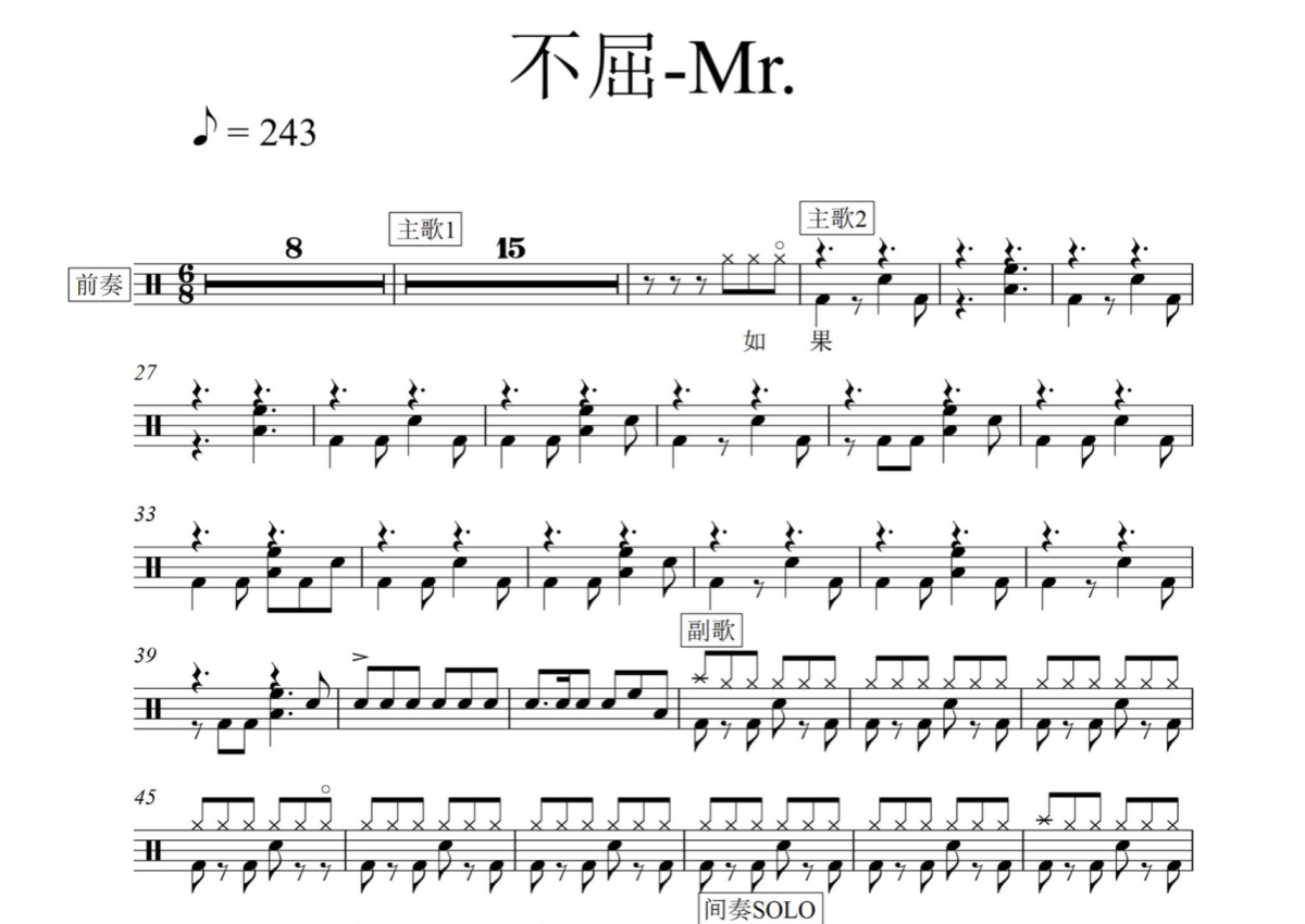 Mr.《不屈》鼓谱 - 架子鼓谱