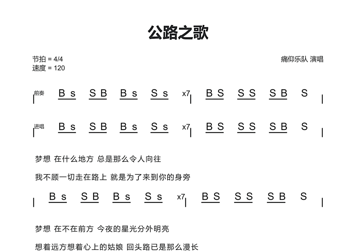 痛仰乐队《公路之歌》鼓谱 - 架子鼓谱