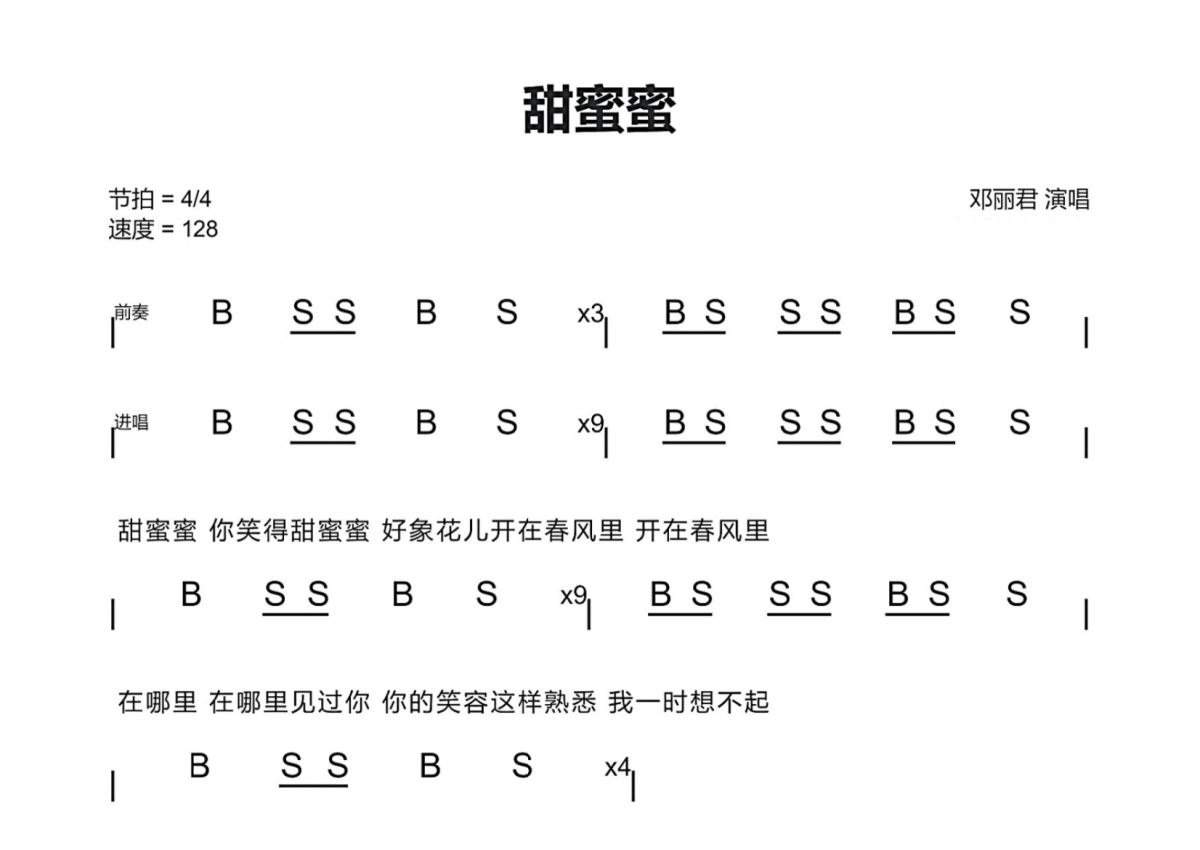 邓丽君《甜蜜蜜》鼓谱 - 非洲鼓谱