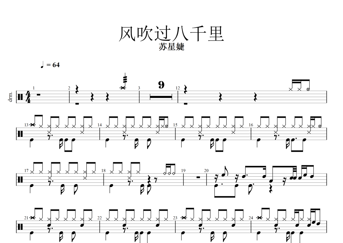 苏星婕《风吹过八千里》鼓谱 - 架子鼓谱