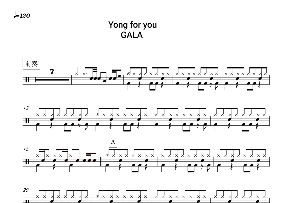 GALA《Yong for you》鼓谱 - 架子鼓谱