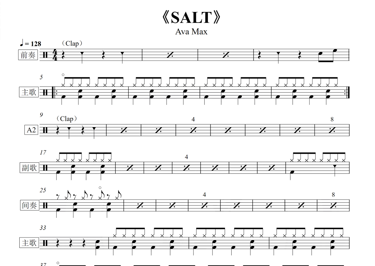 Ava Max《Salt》鼓谱 - 架子鼓谱