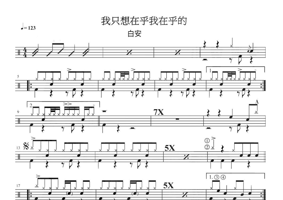 白安《我只想在乎我在乎的》鼓谱 - 架子鼓谱
