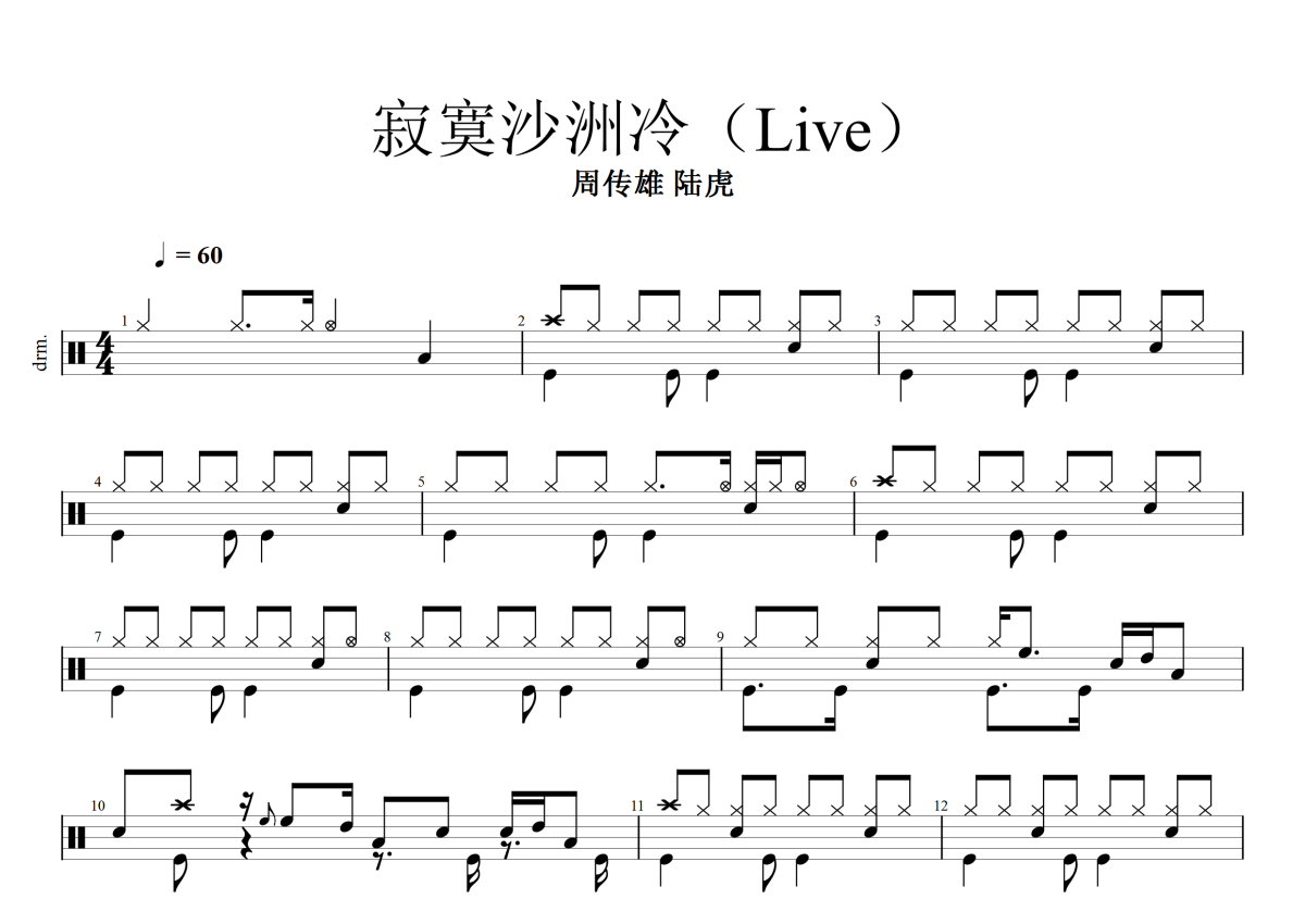 周传雄/陆虎《寂寞沙洲冷》鼓谱 - 架子鼓谱 - 我们的歌第四季