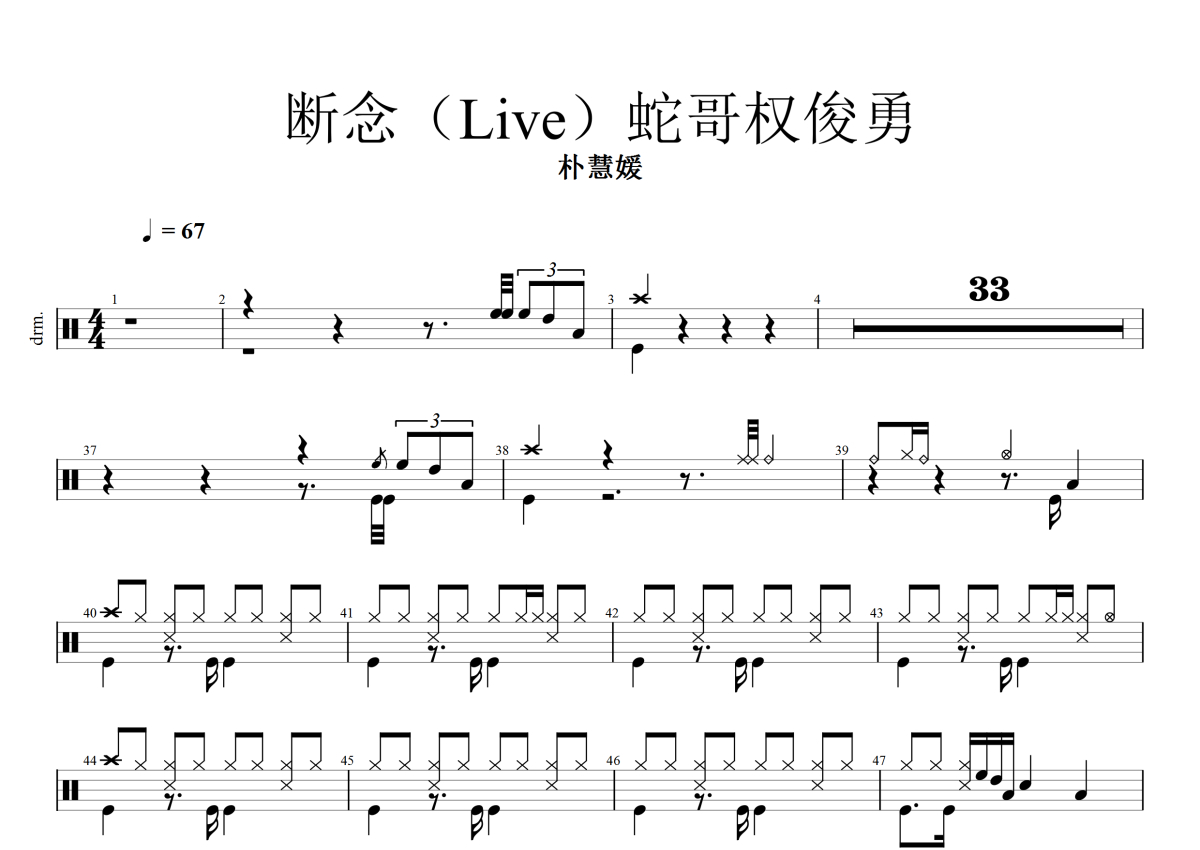 朴慧媛《断念》鼓谱 - 架子鼓谱 - Live