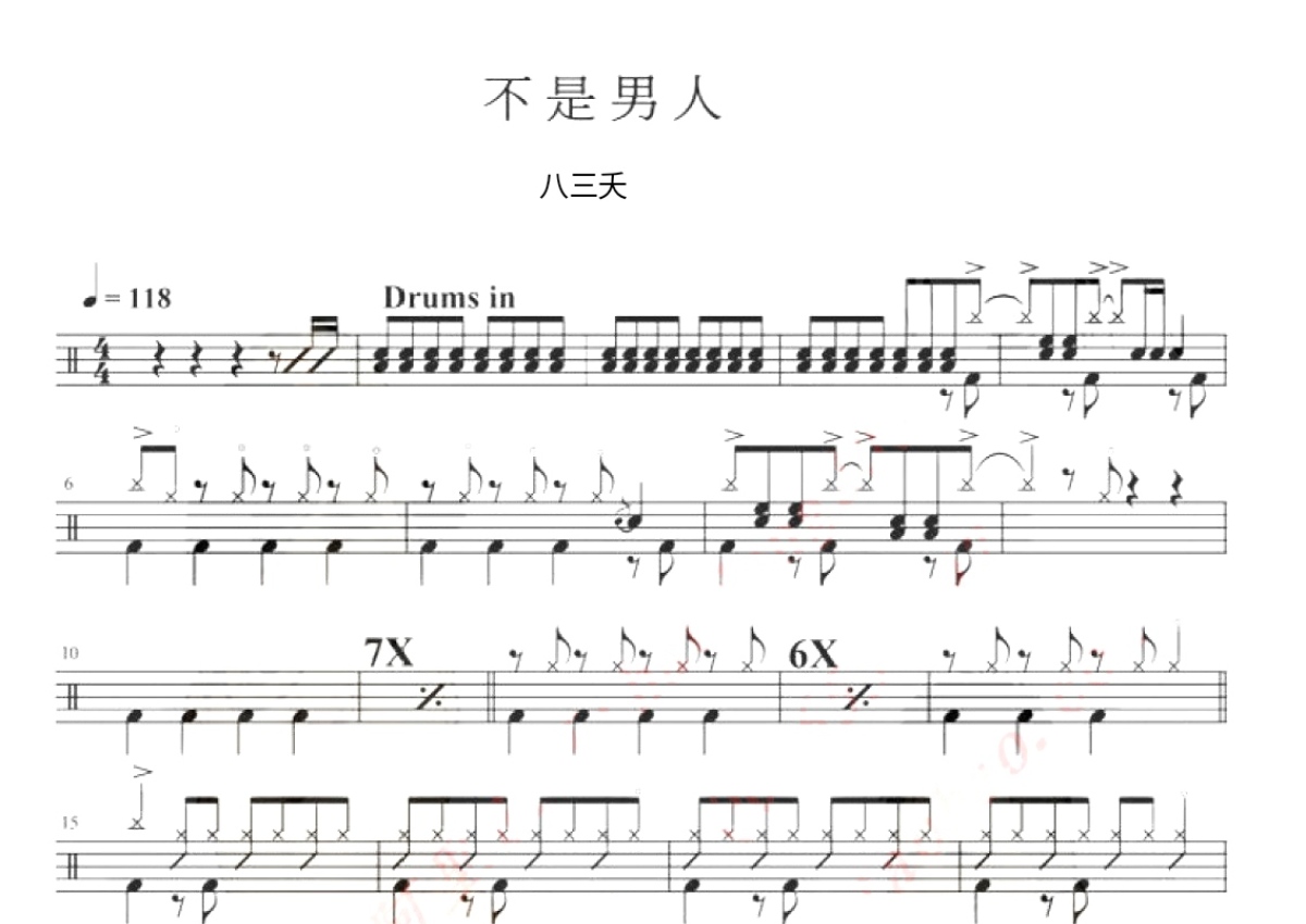 八三夭乐队《不是男人》鼓谱 - 架子鼓谱