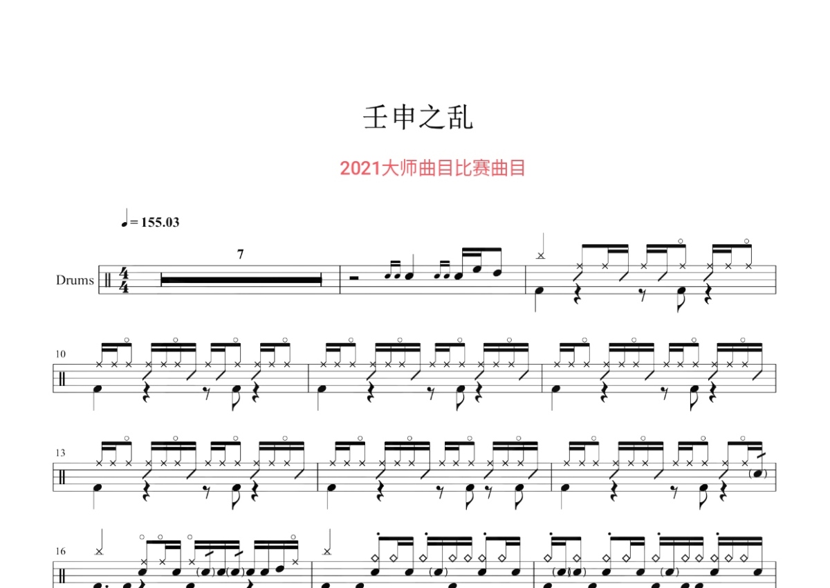 2021大师曲目比赛曲目《壬申之乱》鼓谱 - 架子鼓谱