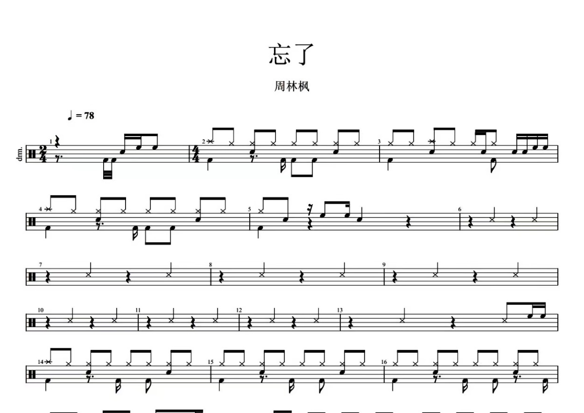 周林枫《忘了》鼓谱 - 架子鼓谱