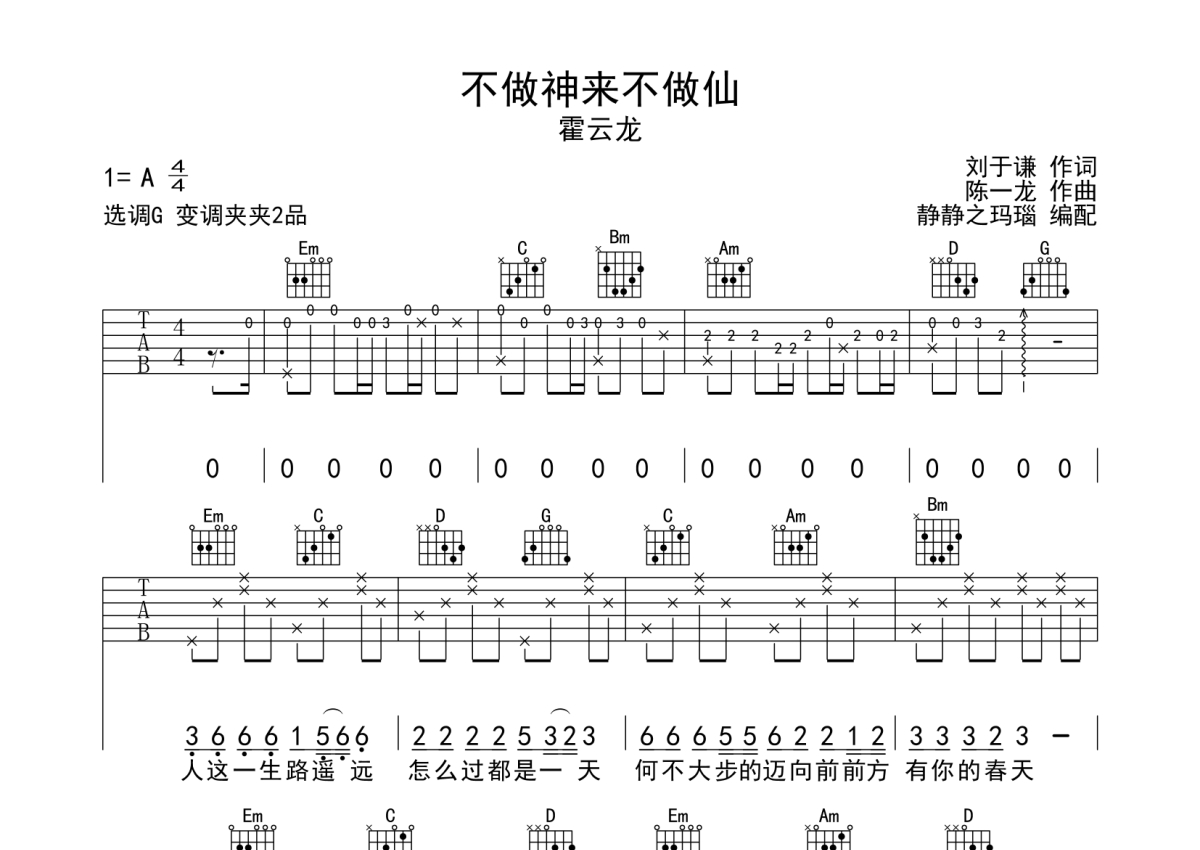 霍云龙《不做神来不做仙》吉他谱 - G调弹唱六线谱