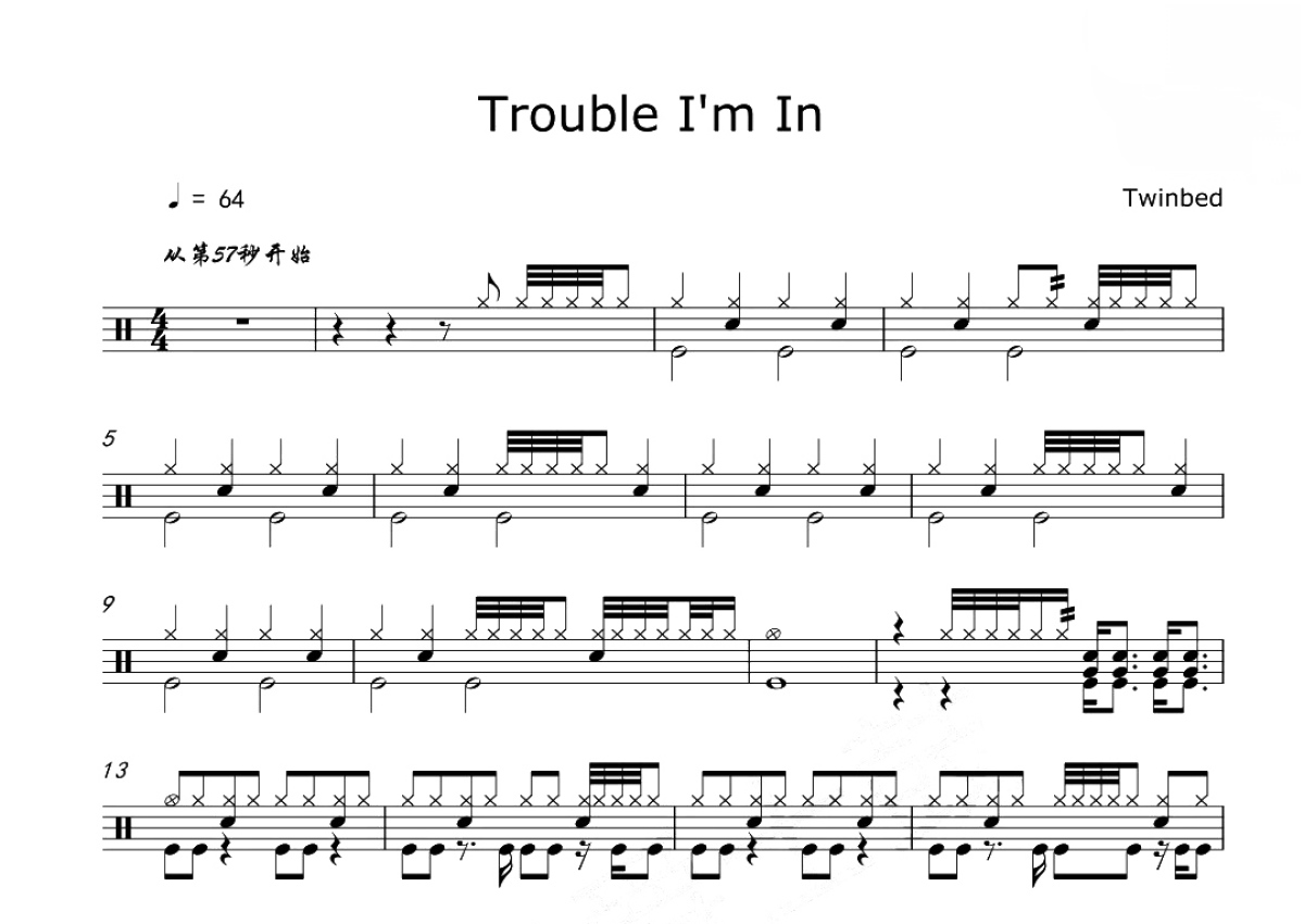Twinbed《Trouble I'm In》鼓谱 - 架子鼓谱
