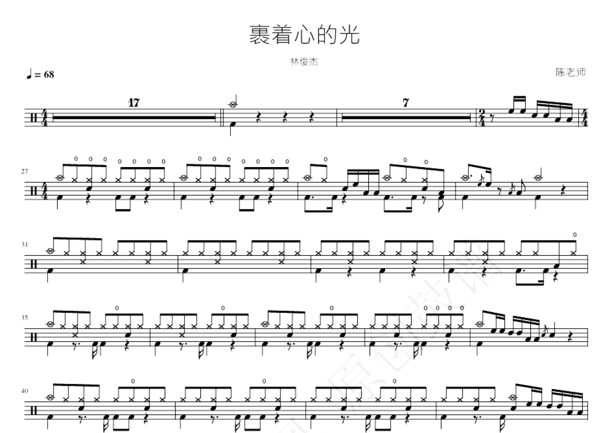 林俊杰《裹着心的光》鼓谱 - 架子鼓谱