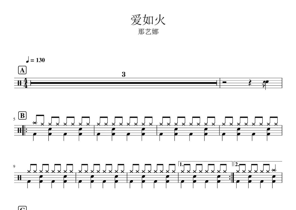那艺娜《爱如火》鼓谱 - 架子鼓谱