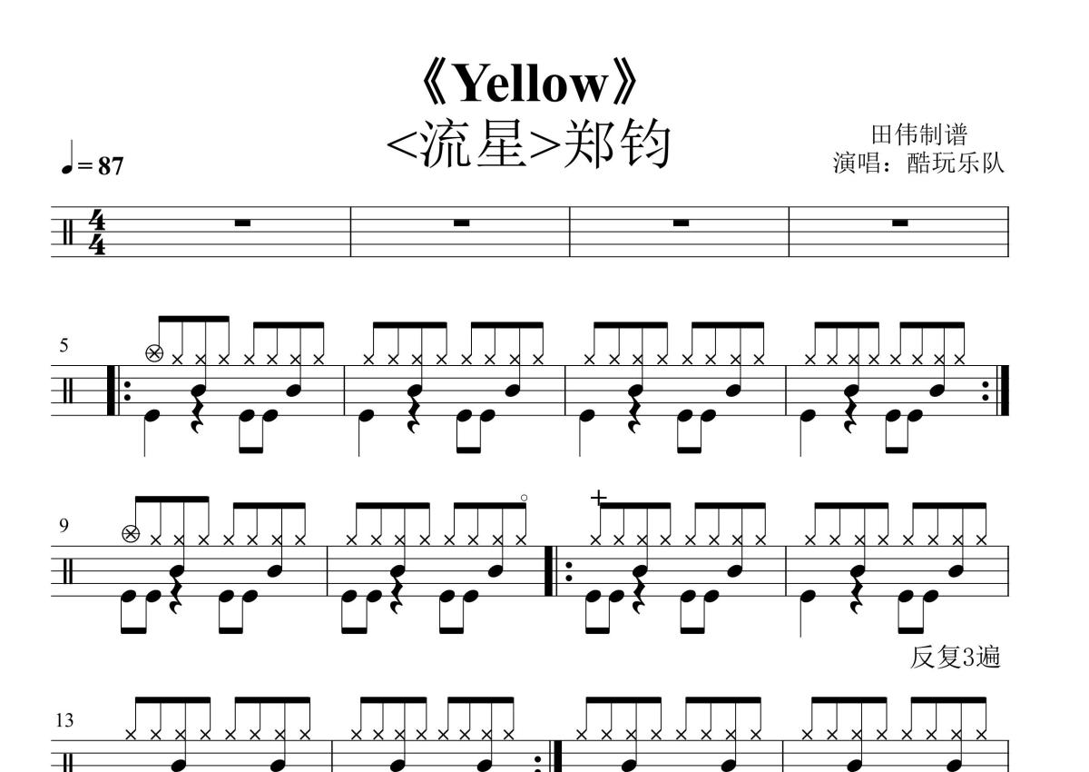 酷派&郑钧《yellow》鼓谱 - 架子鼓谱