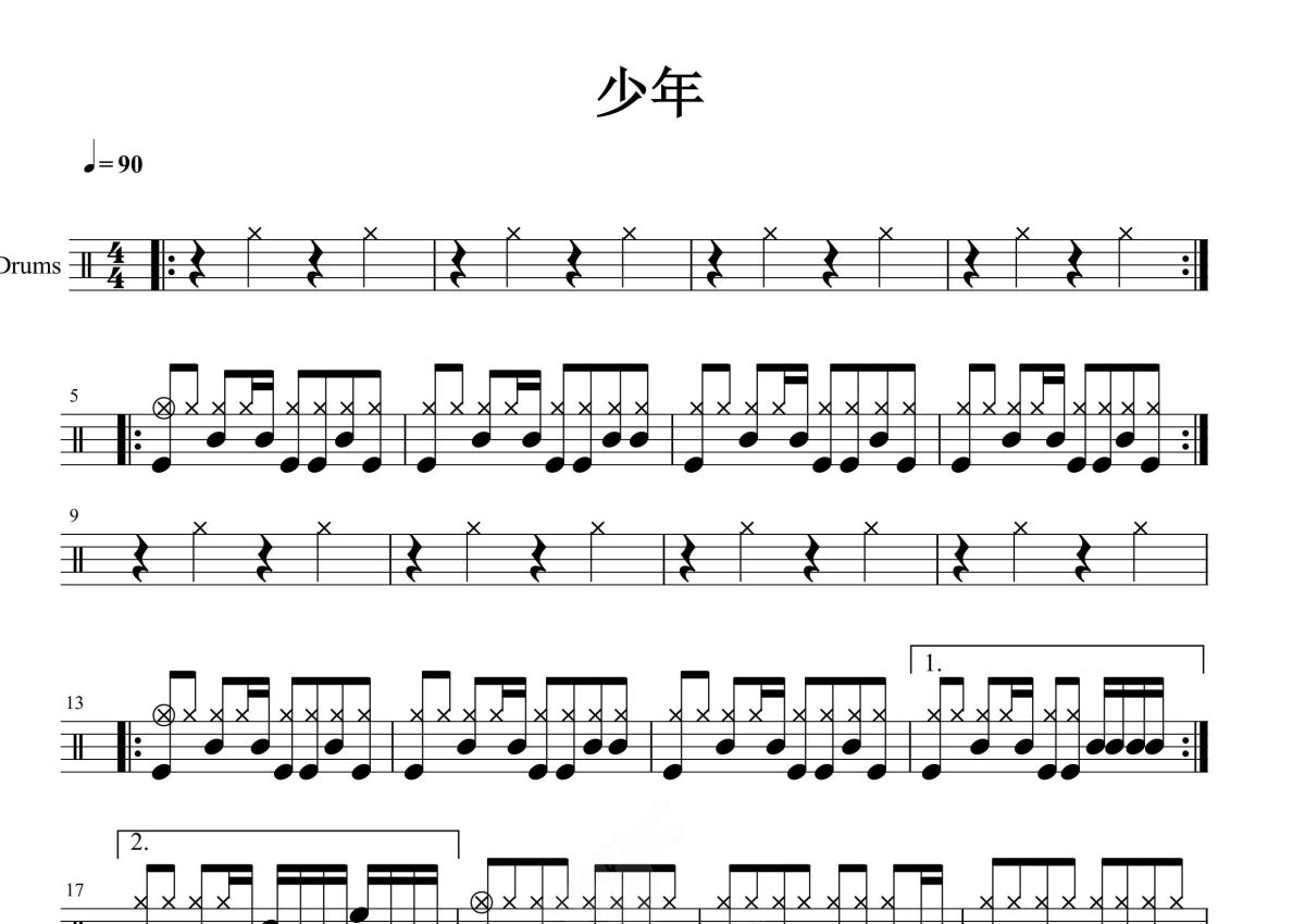 梦然《少年》鼓谱 - 架子鼓谱