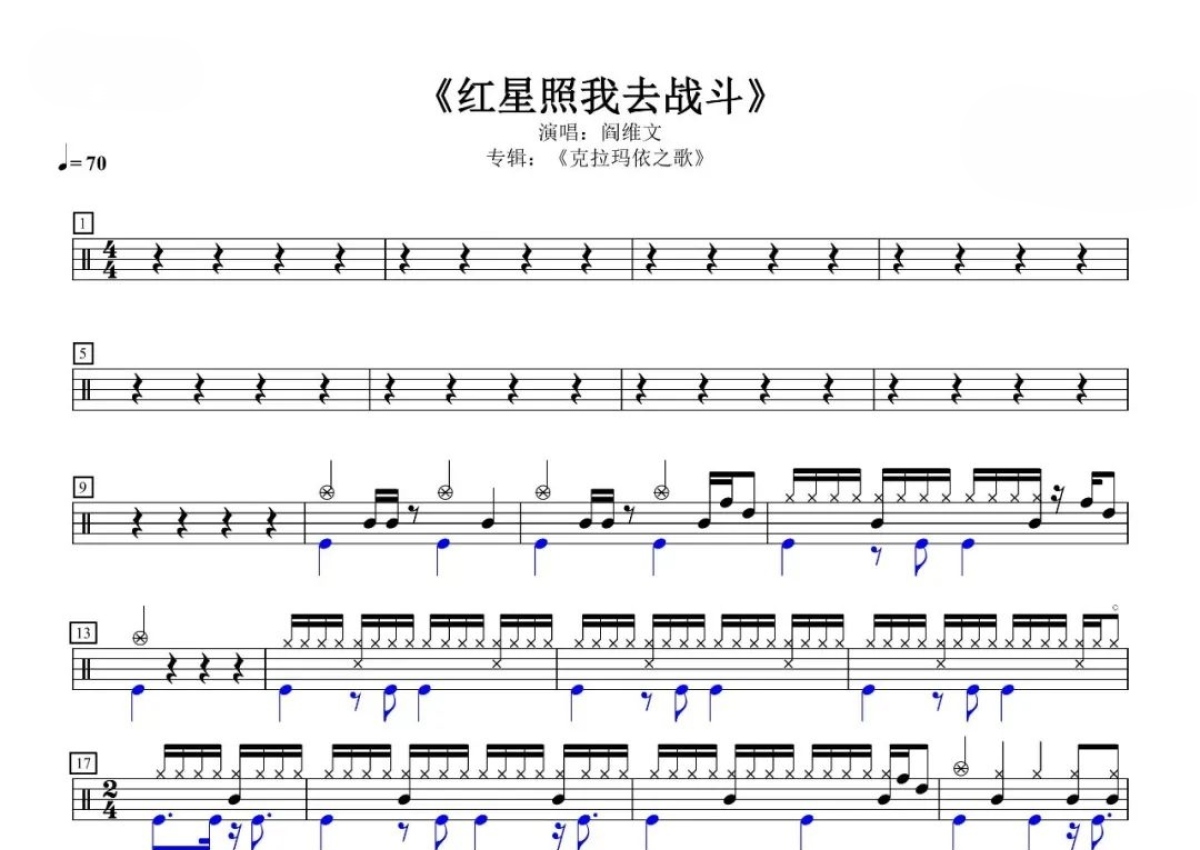 阎维文《红星照我去战斗》鼓谱 - 架子鼓谱