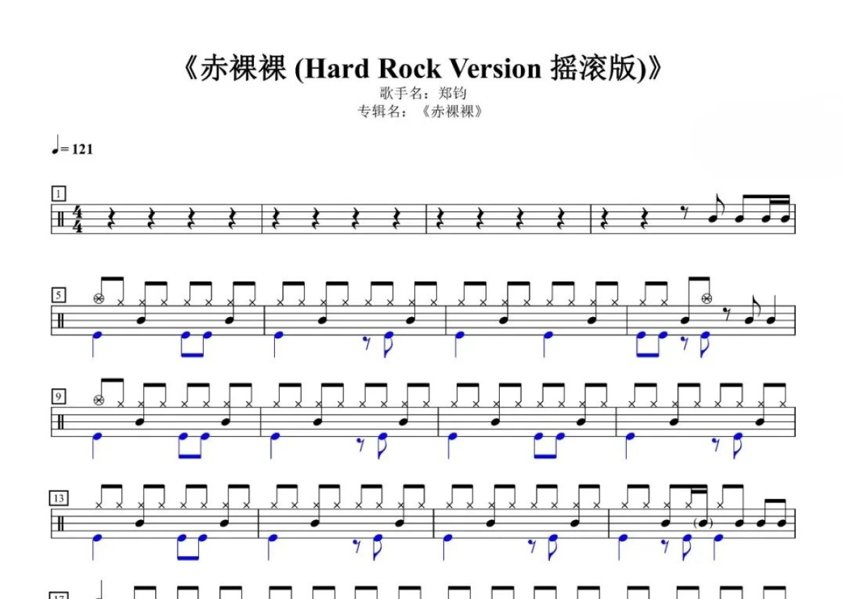 郑钧《赤裸裸》鼓谱 - 架子鼓谱 - HardRockVersion摇滚版