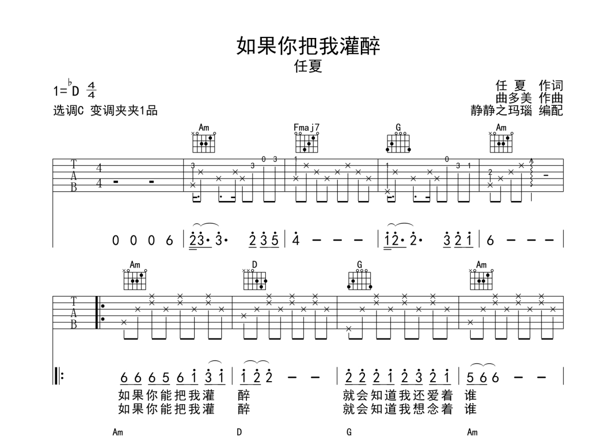 任夏《如果你把我灌醉》吉他谱 - C调弹唱六线谱