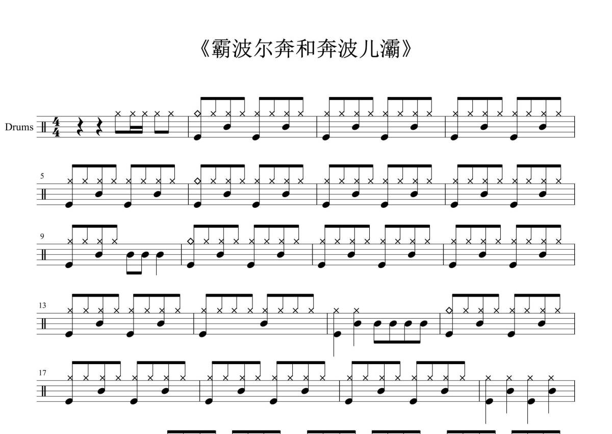 儿歌摇滚《奔波儿灞和霸波尔奔》鼓谱 - 架子鼓谱