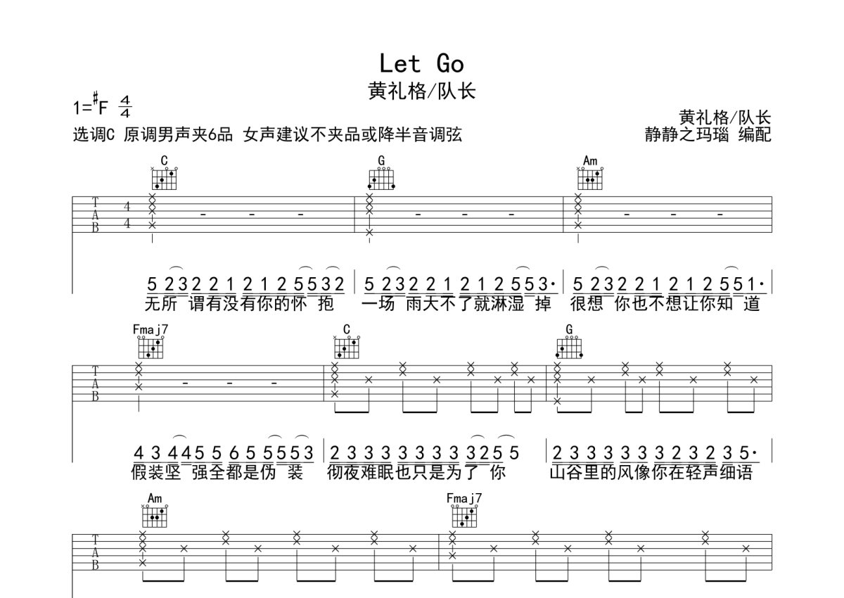 黄礼格/队长《Let Go》吉他谱 - C调弹唱六线谱
